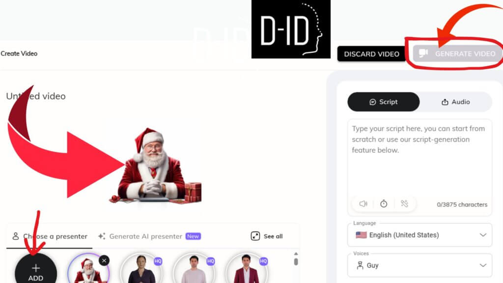 Try the Prompt: "You will talk as an AI Avatar who will be the presenter on a YouTube channel called The Santa Claus Express. Your name is Santa Claus. Write a script of your first video, where you will be teaching people how to create their own avatar for free."